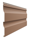 Сайдинг серии «Premium» всего на 0,1 мм толще сайдинга серии «Standard», но при этом гарантия производителя действует почти в 2 раза дольше. Также в устройстве панелей данной серии предусмотрен антиураганный замок, а количество цветов в коллекции корабельный брус достигает 15, включая популярный оттенок «Капучино».