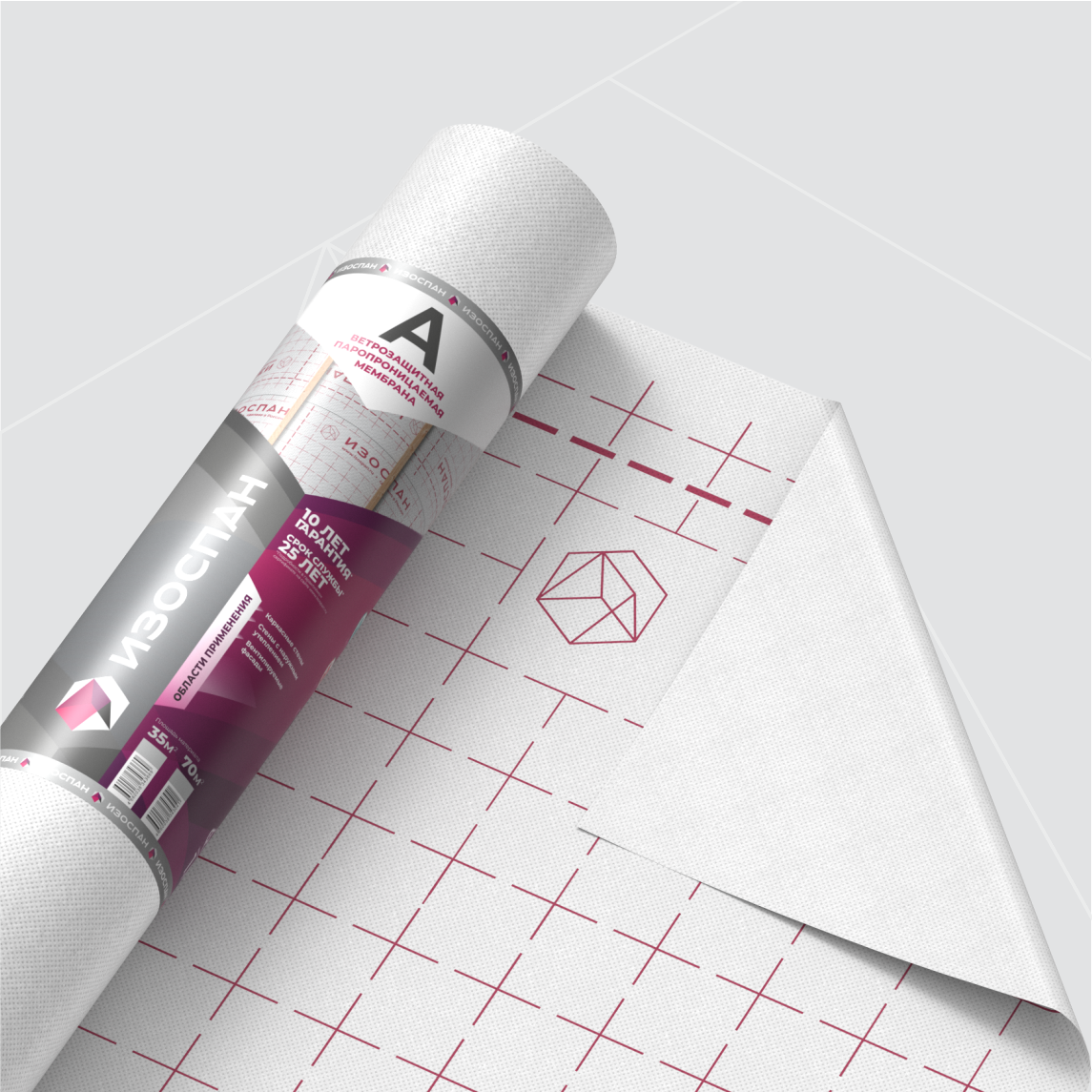 Ветрозащитная мембрана Изоспан A препятствует конвективному движению воздуха через теплоизоляцию, снижая теплопотери. Изоспан A обладает водоупорностью, достаточной для защиты утеплителя и других внутренних элементов конструкций стен от атмосферных осадков, проникающих под наружную обшивку, при этом является паропроницаемым материалом, поэтому не препятствует выходу водяных паров из утеплителя в вентилируемый зазор. Прочность материала способствует устойчивости к механическим нагрузкам на этапе монтажа и в процессе эксплуатации.