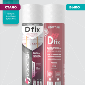 Изоспан D fix — двухслойный материал, выполненный из высокопрочного тканого полипропиленового полотна и полимерной пленки. На полотно материала нанесены две клейкие ленты, предназначенные для герметизации нахлёстов.