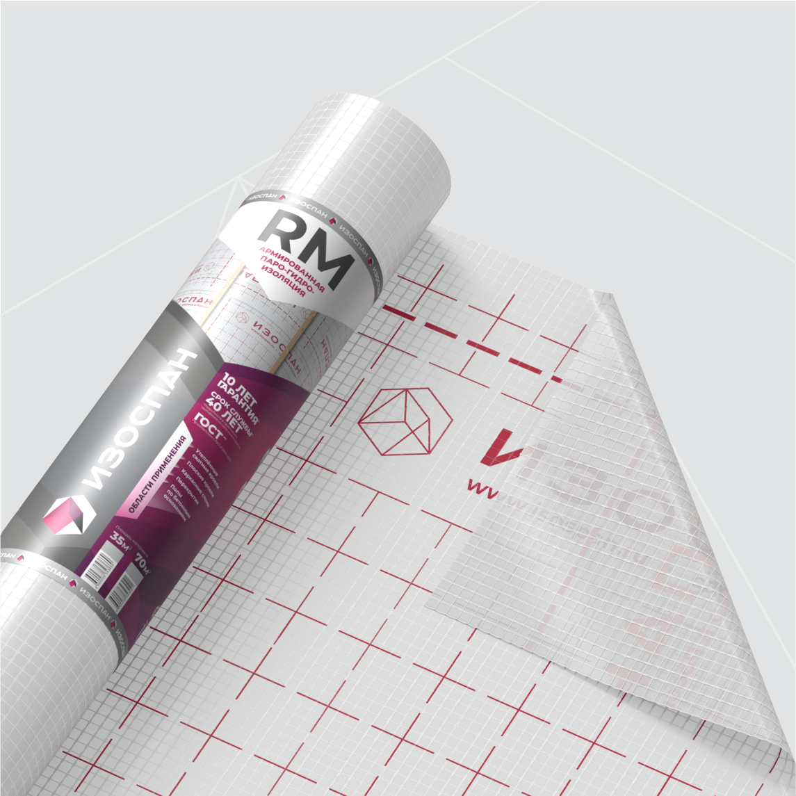 Изоспан RM - трехслойный материал, выполненный из двух полимерных плёнок, армированных сеткой для достижения высокой прочности.