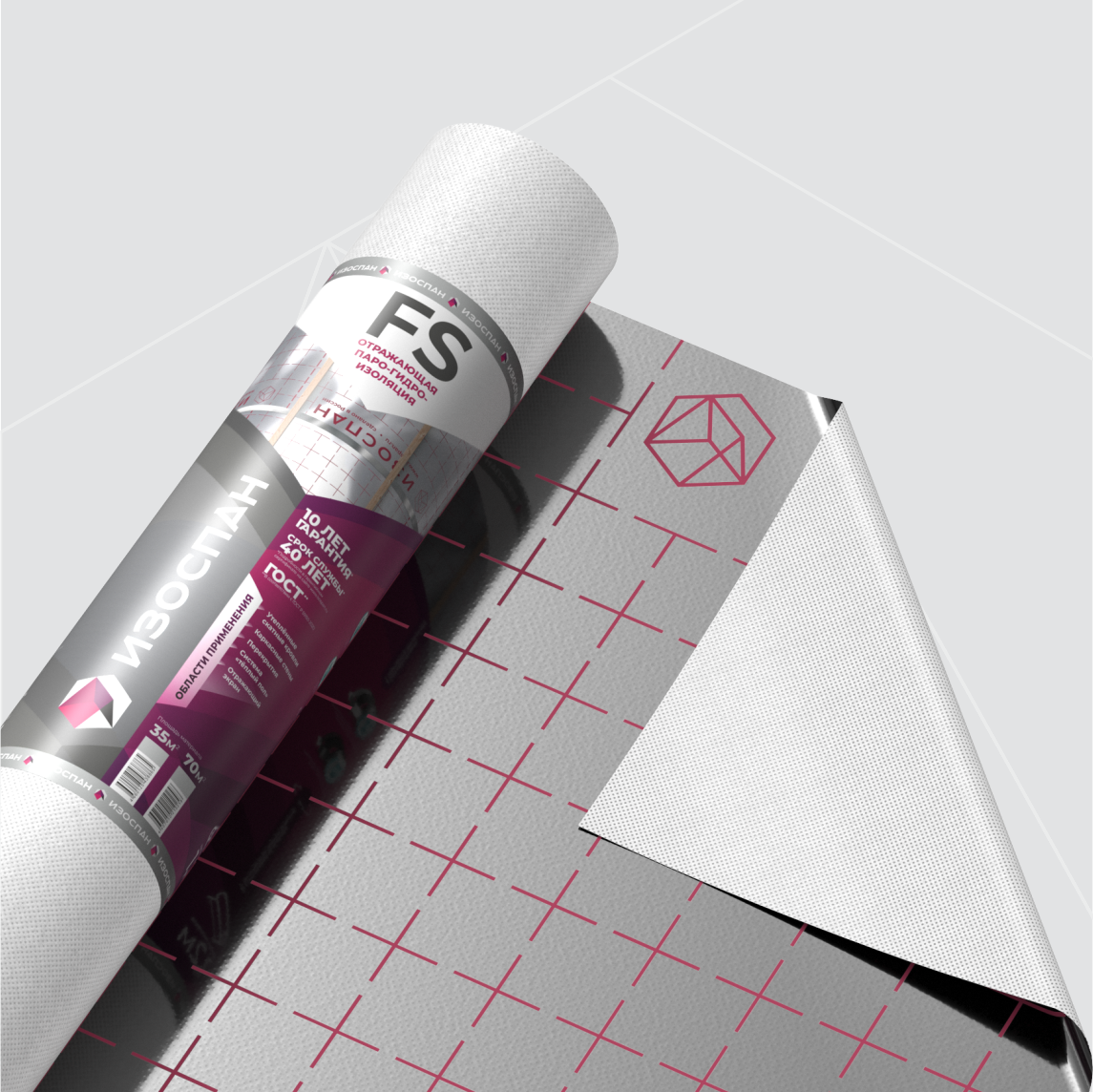 Изоспан FS — трёхслойный материал, выполненный из металлизированной полипропиленовой плёнки, полипропиленового нетканого полотна и полимерной плёнки.