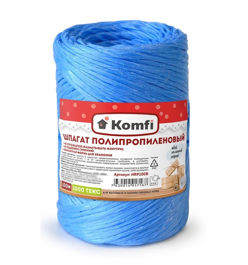 Шпагат полипропиленовый, 100 м, 1000 текс, синий, Komfi