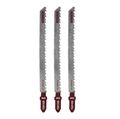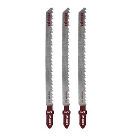 Предназначены для работы с электролобзиком для чистового реза мягкой древесины, ДСП, фанеры, ДВП толщиной 10 - 65 мм. Изготовлены из высокопрочной инструментальной стали. Зубья шлифованные, под свободным углом. Рабочая длина 91 мм. Количество зубьев на 1 дюйм режущей кромки TPI = 8