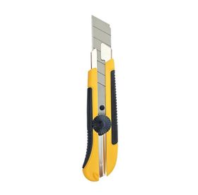 Предназначен для резки бумаги, картона, ткани и пластика. Пластиковый корпус. Металлические направляющие. Оснащен отламывающимся сегментированным лезвием.