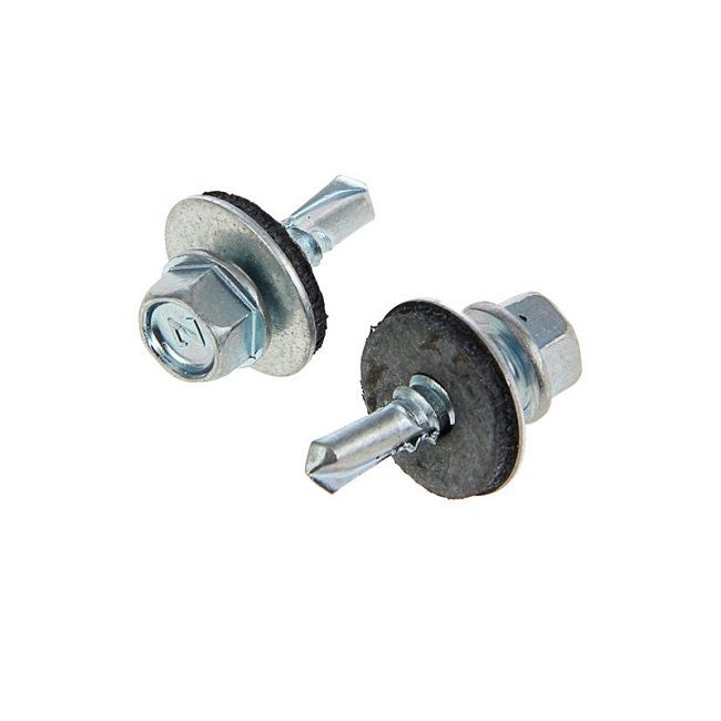 Предназначен для крепления кровельных материалов к металлическим и деревянным каркасам. Имеет шестигранную головку с шайбой и резиновой прокладкой EPDM, наконечник - сверло.