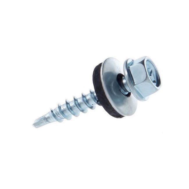 Предназначен для крепления кровельных материалов к металлическим и деревянным каркасам. Имеет шестигранную головку с шайбой и резиновой прокладкой EPDM, наконечник - сверло.