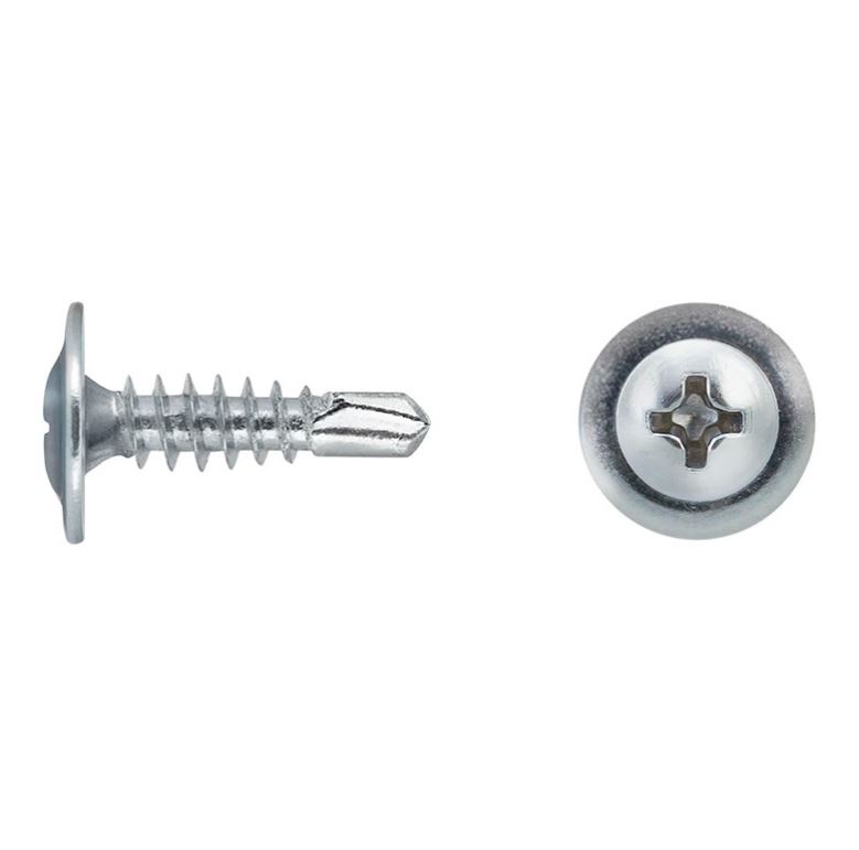 Предназначен для крепления металлических профилей до 0,9 мм без предварительного сверления. Имеет галетную головку с пресс-шайбой, крестообразный шлиц Phillips №2, наконечник со сверлом.