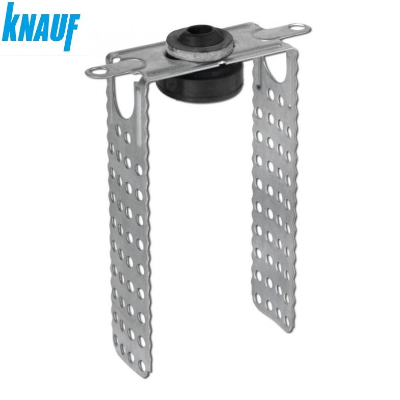 Подвес прямой с демпферной резиной для повышения звукоизоляции конструкций сухого строительства. Акустически разделяет базовую строительную конструкцию от профильной системы облицовки или потолка, придавая тем самым дополнительные звукоизоляционные свойства конструкции. Является акустической изоляцией, несущая способность 40 кг. Поставляется в не согнутом виде.