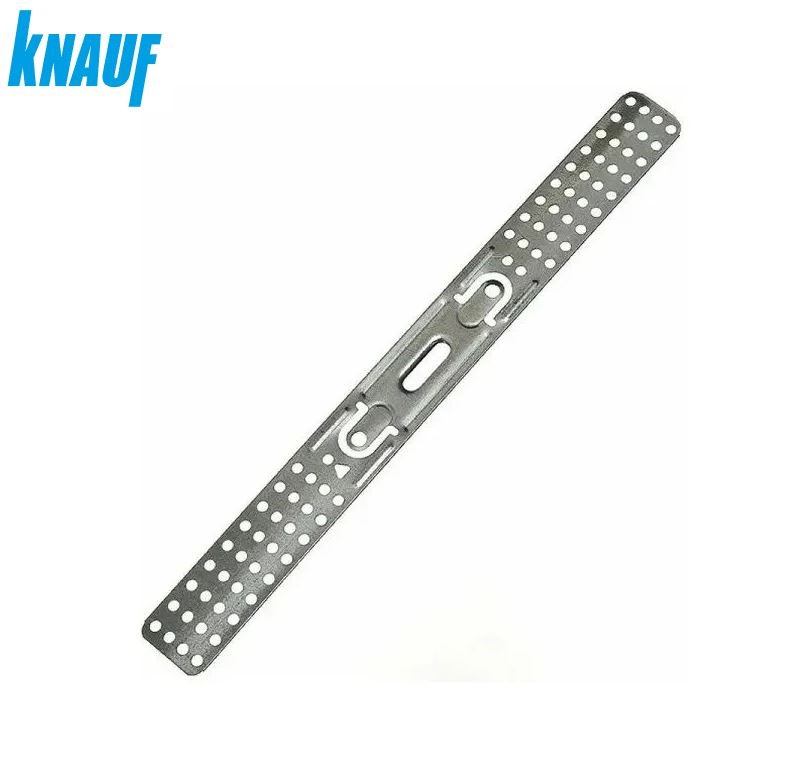Подвес — строительный элемент, служит для фиксации профилей ПП к потолкам, стенам, каркасным конструкциям. Это металлическая пластина с перфорированными отверстиями, усиленная ребрами жесткости. Производится из стали, для защиты от коррозии предусмотрено оцинкованное покрытие. Для крепления к стенам из кирпича, дерева, блоков используются дюбеля, при работе с бетонными перекрытиями — анкеры.