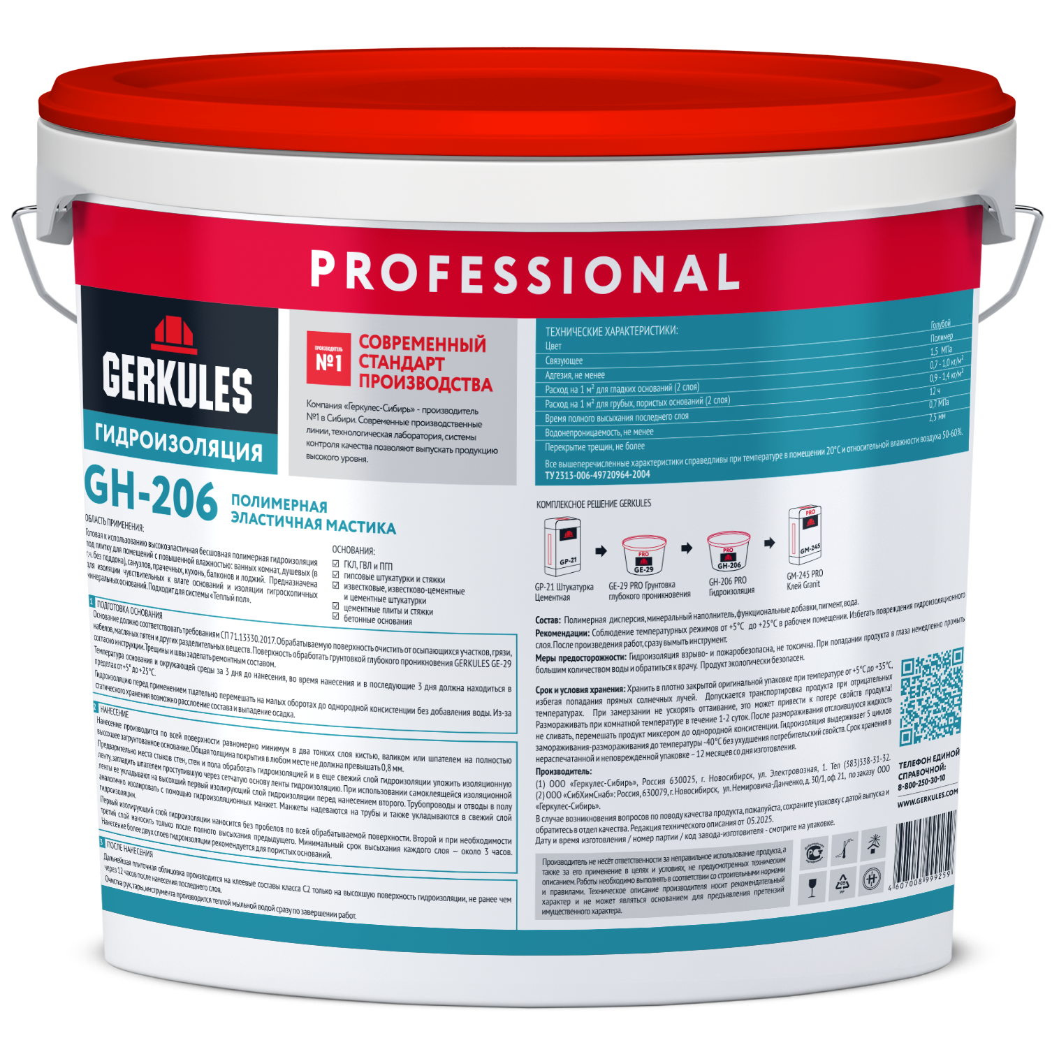 Дальнейшая отделка производится только на высохшую поверхность гидроизоляции, но не ранее чем через 12 часов (при +20°С и влажности воздуха 50%) после нанесения последнего слоя. Приклеивание плиток осуществлять клеями класса не ниже С2! Рекомендованные продукты: GERKULES GM-245 PRO, GM-255 PRO.