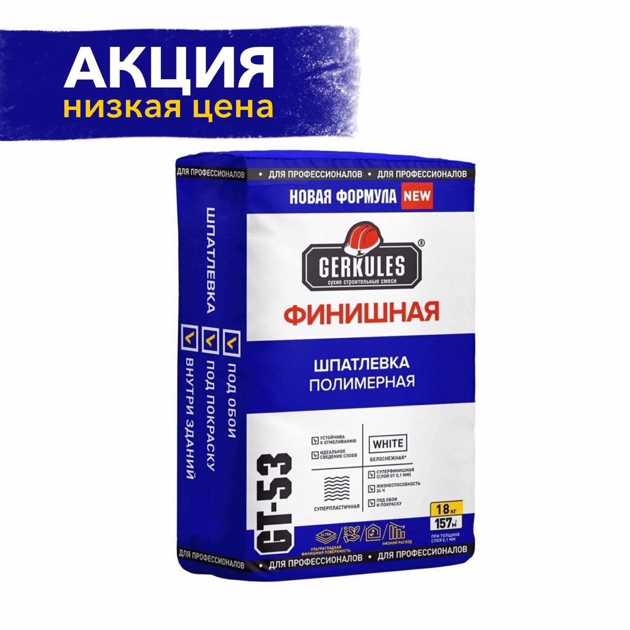 АКЦИЯ! Шпатлевка полимерная Финишная Gerkules GT-53 18кг