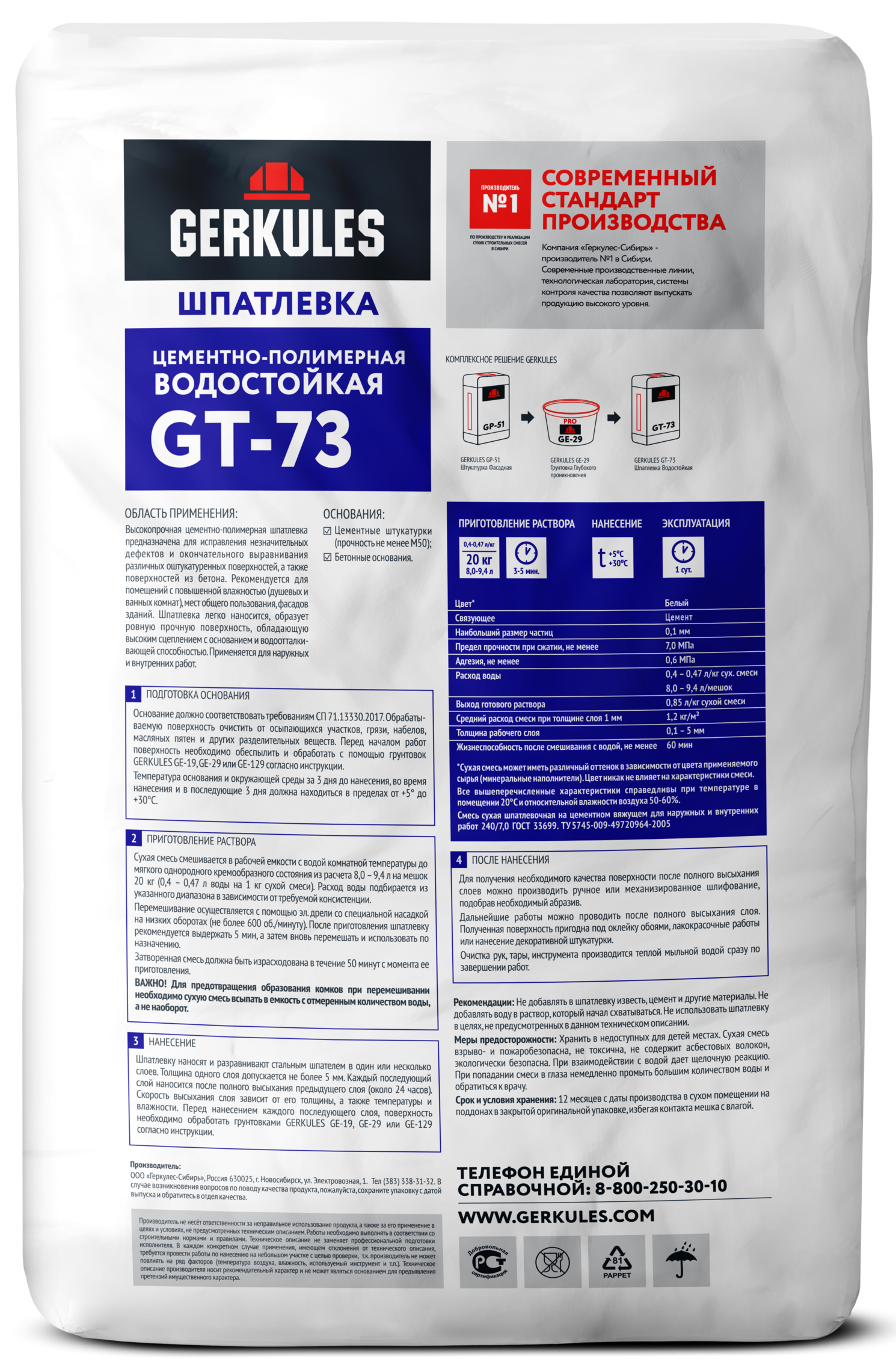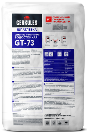 Шпатлевку наносят и разравнивают стальным шпателем в один или несколько слоев. Толщина одного слоя допускается не более 5 мм. Каждый последующий слой наносится после полного высыхания предыдущего слоя (около 24 часов). Скорость высыхания слоя зависит от его толщины, а также температуры и влажности. Перед нанесением каждого последующего слоя, поверхность необходимо обработать грунтовками GERKULES GE-19, GE-29 или GE-129 согласно инструкции.
