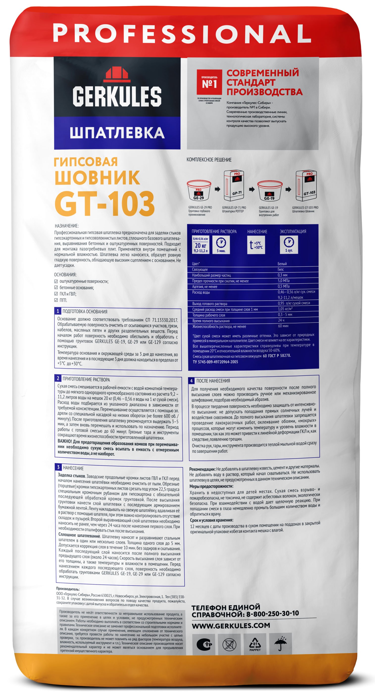 Шпатлевку наносят и разравнивают стальным шпателем в один или несколько слоев. Толщина одного слоя 0,3 до 5 мм за один проход. Допускается коррекция слоя в течение 10 мин. без задиров и скатывания. Каждый последующий слой наносится после полного высыхания предыдущего слоя (около 24 часов). Скорость высыхания слоя зависит от его толщины, а также температуры и влажности в помещении. Перед нанесением каждого последующего слоя, поверхность необходимо обработать грунтовками GERKULES GE-19, GE-29 или GE-129 согласно инструкции.