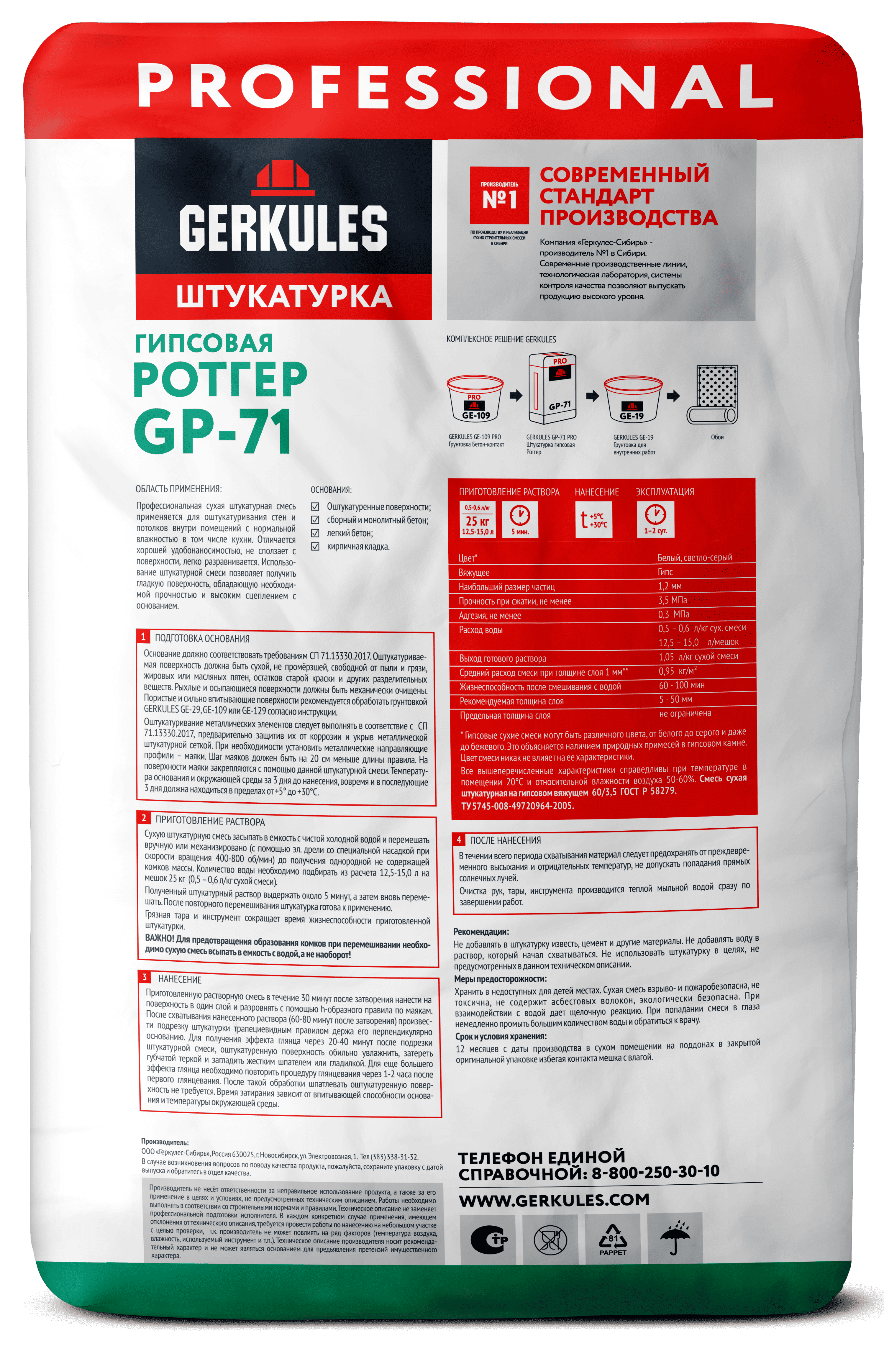Основание должно соответствовать требованиям СП 71.13330.2017. Оштукатуриваемая поверхность должна быть сухой, не промёрзшей, свободной от пыли и грязи, жировых или масляных пятен, остатков старой краски и других разделительных веществ. Рыхлые и осыпающиеся поверхности должны быть механически расчищены. Пористые и сильно впитывающие поверхности рекомендуется обработать грунтовкой GERKULES GE-29, GE-109 или GE-129 согласно инструкции.