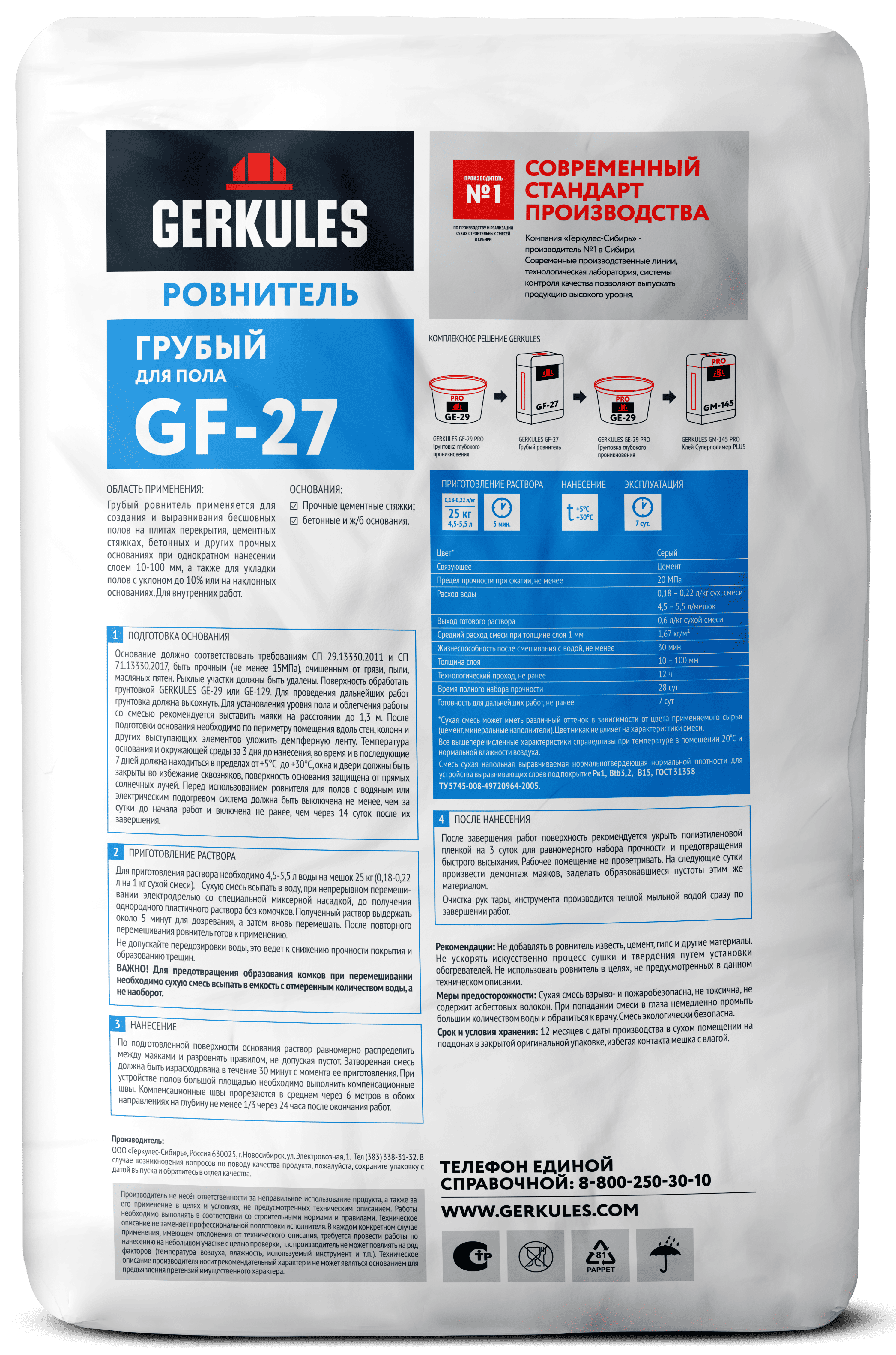 Основание должно соответствовать требованиям СП 29.13330.2011 и СП 71.13330.2017, быть прочным (не менее 15МПа), очищенным от грязи, пыли, масляных пятен. Рыхлые участки должны быть удалены. Поверхность обработать грунтовкой GERKULES GE-29 или GE-129. Для проведения дальнейших работ грунтовка должна высохнуть. Для установления уровня пола и облегчения работы со смесью рекомендуется выставить маяки на расстоянии до 1,3 м. После подготовки основания необходимо по периметру помещения вдоль стен, колонн и других выступающих элементов уложить демпферную ленту.